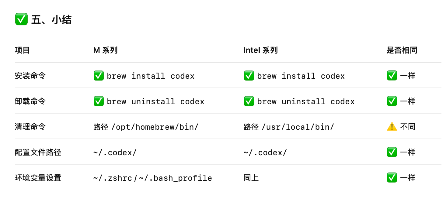 💻 Codex 安装与配置教程(适用于 macOS M 系列芯片)文章末尾添加了英特尔芯片区别