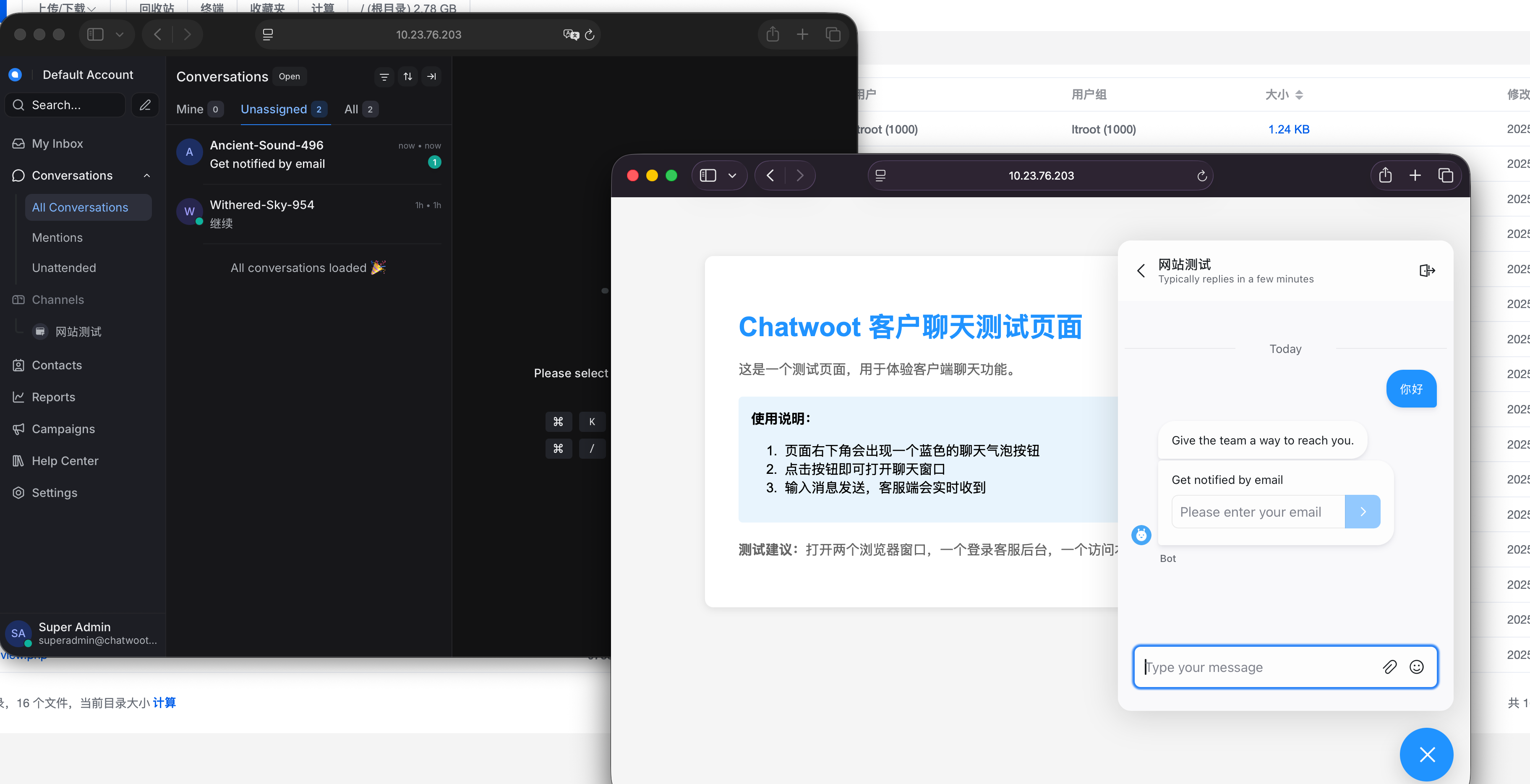 # ttvip部署成功🎉: 平台端: https://platform.tiktoknet.cc/ 、admin kt778899 代理端: https://agent.tiktoknet.cc/、arise 085200 客户端:https://www.tiktoknet.cc、arise 085200 客服系统端: https://chat.tiktoknet.vip/、superadmin@chatwoot.local Chatwoot@2025· # 部署步骤 1、部署chatwoot 2、部署1panel 3、在1panel上面安装所需环境 4、部署项目 # 1、chatwoot ## 部署方案 ``` 完美!我已经完成了对6000端口服务的全面分析。让我总结一下。 ⏺ 📊 6000端口服务部署分析报告 1️⃣ 服务概况 - 应用名称: Chatwoot (客服系统) - 应用服务器: Puma 6.4.3 - 监听端口: 6000 (绑定到 0.0.0.0) - 进程ID: 9638 - 运行用户: chatwoot - 运行状态: 正常运行中 (自 2025-10-13 启动) 2️⃣ 技术栈 - 编程语言: Ruby 3.2.3 - 框架: Ruby on Rails 7.1.5.2 - 包管理器: Bundler 2.5.16 - 应用服务器: Puma 6.4.3 (单模式,5线程) - 数据库: PostgreSQL 16 (chatwoot_production) - 缓存/队列: Redis 6.x - 后台任务: Sidekiq 7.3.1 3️⃣ 部署方式 启动命令: cd /opt/chatwoot && \ export RAILS_ENV=production && \ export PORT=6000 && \ nohup bundle exec rails server -b 0.0.0.0 >> log/rails-6000.log 2>&1 & 启动方式: 手动启动 (使用 nohup 后台运行) - ❌ 未使用 systemd 服务 - ❌ 未使用 cron 自动启动 - ❌ 未使用 rc.local - ⚠️ 进程已与终端分离 (父进程PID=1) 4️⃣ 应用目录结构 /opt/chatwoot/ ├── app/ # 应用代码 ├── config/ # 配置文件 │ └── puma.rb # Puma配置 ├── db/ # 数据库迁移 ├── log/ # 日志文件 │ ├── rails-6000.log # Rails服务器日志 │ └── sidekiq.log # Sidekiq后台任务日志 ├── .env # 环境变量配置 ├── Gemfile # Ruby依赖定义 └── Procfile # 进程定义文件 5️⃣ 关键配置信息 环境变量 (.env): - RAILS_ENV=production - PORT=6000 (被启动命令覆盖) - FRONTEND_URL=https://chat.ktai.im - POSTGRES_HOST=localhost:5432 - REDIS_URL=redis://localhost:6379 - SECRET_KEY_BASE: ✅ 已配置 - ENABLE_ACCOUNT_SIGNUP=true Puma配置: - 最小线程数: 5 - 最大线程数: 5 - Worker进程数: 0 (单进程模式) - PID文件: tmp/pids/server.pid - 预加载应用: 已启用 6️⃣ 相关服务 1. Web服务器 (PID 9638): - 监听 0.0.0.0:6000 - 日志: /opt/chatwoot/log/rails-6000.log 2. 后台任务处理 (PID 17823): - Sidekiq 工作进程 - 配置: config/sidekiq.yml - 日志: /opt/chatwoot/log/sidekiq.log 3. 数据库连接: - PostgreSQL (活跃连接已建立) - 数据库: chatwoot_production 7️⃣ 反向代理 - Nginx: 已安装 (v1.24.0) - ⚠️ 未配置反向代理: 当前Nginx使用默认配置,没有将流量代理到6000端口 - 6000端口直接暴露在公网上 8️⃣ 启动流程 根据Procfile定义,标准启动流程应该是: # Web进程 bundle exec rails ip_lookup:setup && bin/rails server -p $PORT -e $RAILS_ENV # Worker进程 bundle exec rails ip_lookup:setup && bundle exec sidekiq -C config/sidekiq.yml 但实际是通过bash命令手动启动的,跳过了ip_lookup:setup步骤。 9️⃣ 运行时长 - Rails服务器: 自 2025-10-13 运行至今 (约14天) - Sidekiq进程: 自 2025-10-14 运行至今 (约13天) - CPU时间: 160分钟+ (Rails), 50分钟+ (Sidekiq) 🔟 潜在问题与建议 ⚠️ 发现的问题: 1. 无自动启动机制: 服务器重启后需要手动启动服务 2. 无反向代理: 6000端口直接暴露,缺少Nginx代理层 3. 无进程监控: 没有使用systemd/supervisor等进程管理工具 4. 日志轮转: 未见日志轮转配置,日志可能无限增长 💡 建议: 1. 配置 systemd 服务实现自动启动和进程管理 2. 配置 Nginx 反向代理到 6000 端口 3. 添加日志轮转配置 (logrotate) 4. 考虑使用 SSL/TLS (当前配置了 HTTPS 前端URL但未配置证书) --- 分析完成!服务以手动后台方式运行,所有数据仅供查看,未进行任何修改。 ``` ## 踩坑点 1、开启防火墙,支持端口访问 2、设置管理员邮箱密码 3、管理员账号是否具备最高权限 4、设置下面没有完整的功能项, 原因: 账户的feature_flags字段为0,导致所有功能被禁用。这是因为installation_configs表中 缺少ACCOUNT_LEVEL_FEATURE_DEFAULTS配置,账户创建时没有启用任何默认功能。 解决方案: 修复结果 - feature_flags: 0 → 5360152215431 - 启用功能: 24个核心功能 - 服务状态: 已重启,正常运行 📋 已启用的核心功能包括: - 团队管理: Agents, Teams, Agent Bots - 收件箱管理: Inboxes, Channels (Email, Website, Facebook, Instagram) - 对话工具: Labels, Macros, Canned Responses, Automations - 客户管理: CRM, Contacts, Custom Attributes - 营销与报表: Campaigns, Reports, Help Center - 集成功能: Integrations   5、测试页面的需求,要注意使用正确的token,你现在重新梳理 最终版的部署文档给我吧,不要改动原文档,新建最终版部署文档存储到桌面。 ## 部署方案精简版 > 部署方案梳理给我,精简易懂即可,不要长篇大论。 ``` ⏺ Chatwoot 部署方案(精简版) 1. 访问信息 地址: http://10.23.76.203:8000 账号: admin@chatwoot.local 密码: Chatwoot@2025 superadmin@chatwoot.local Chatwoot@2025 2. 服务器信息 IP: 10.23.76.203 SSH密码: Lt#160120 系统: Ubuntu 24.04 3. 技术栈 Chatwoot: 4.7.0 Ruby: 3.2.3 Node.js: 20.19.5 PostgreSQL: 17 Redis: 7.x 4. 数据库 名称: chatwoot_production 用户: chatwoot 密码: 453869d352cd28a7b52b3eb0136353bc 5. 数据存储(已配置到数据盘 /data) PostgreSQL: /data/postgresql/17/ Chatwoot存储: /data/chatwoot/storage/ 应用代码: /opt/chatwoot/ 6. 服务管理 # 查看状态 systemctl status chatwoot-web systemctl status chatwoot-worker # 重启服务 systemctl restart chatwoot-web chatwoot-worker # 查看日志 journalctl -u chatwoot-web -f 7. 关键配置文件 环境变量: /opt/chatwoot/.env Web服务: /etc/systemd/system/chatwoot-web.service Worker服务: 